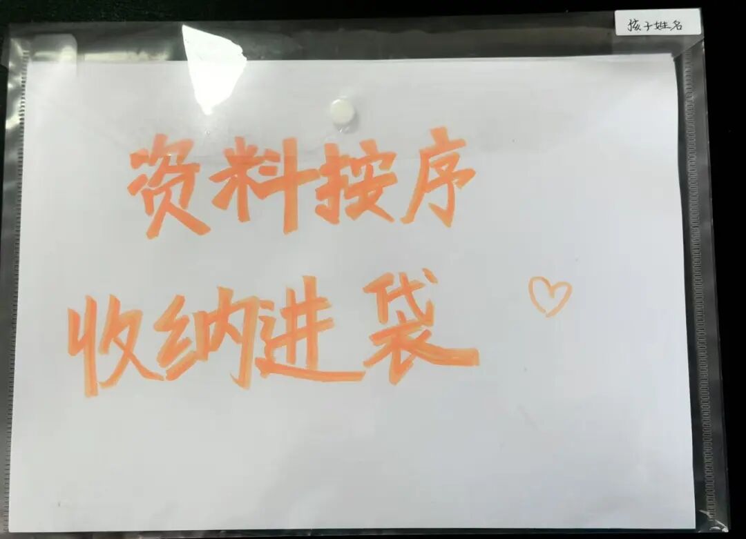 以上资料请家长自备透明文件袋,用名字贴工整规范地写好孩子名字,贴在档案袋右上角位置。