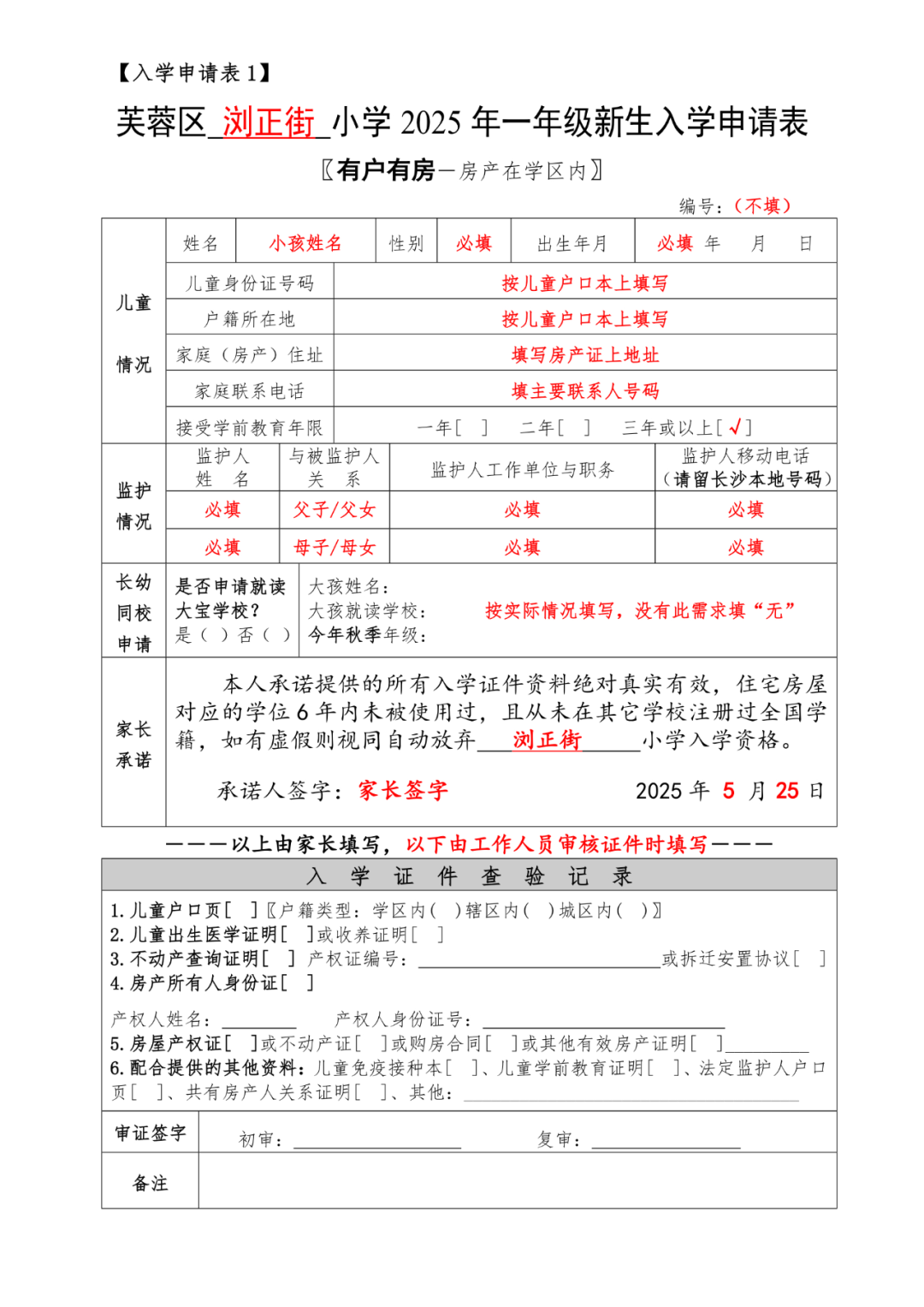 1.请关注学校微信公众号“长沙市芙蓉区浏正街小学”,提前下载并参照样表认真填写好《一年级新生入学申请表》。