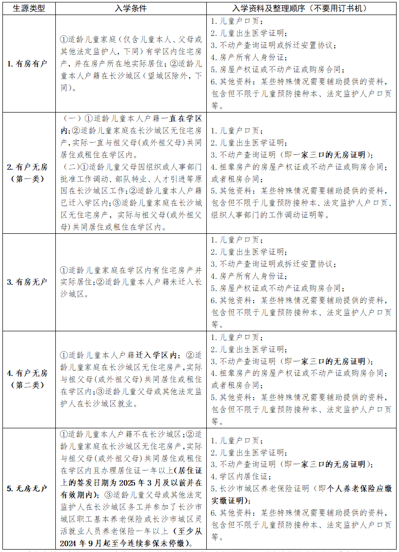 为全面落实长沙市、芙蓉区教育局2025年招生工作要求,规范招生管理,确保2025年学区内完全符合条件的适龄儿童按时入学,特就今年我校新生招生工作的有关规定公告如下: