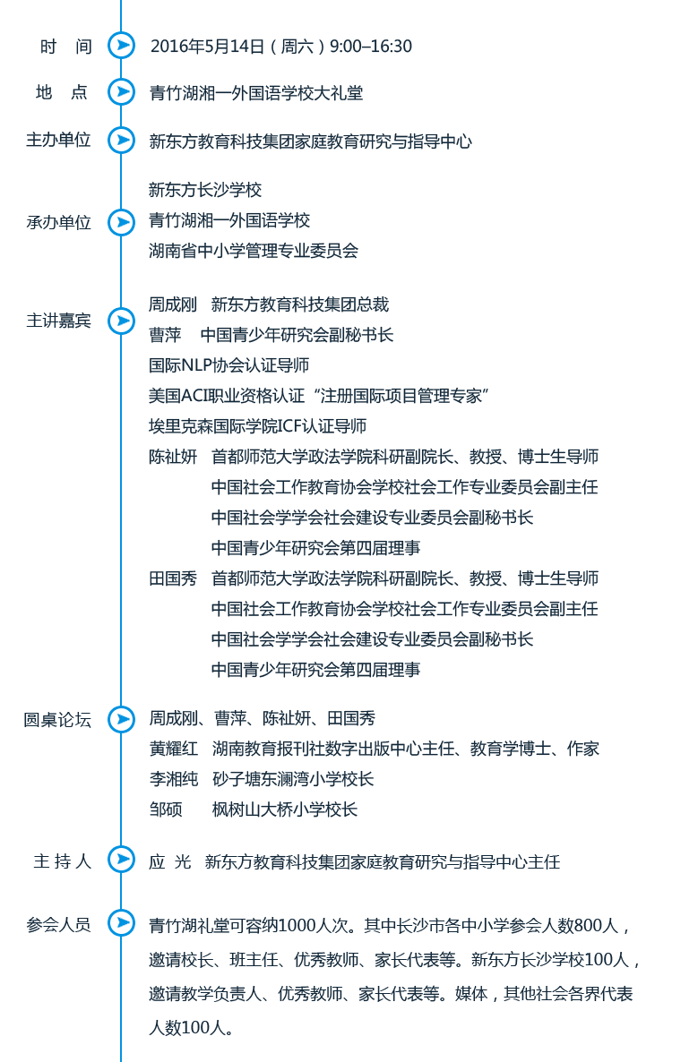 新东方家庭教育高峰论坛由新东方家庭教育研究与指导中心发起,秉承"促进中国家庭和谐美满,成就孩子真正幸福"的使命,对家庭教育命题进行深入分析、广泛研讨,为中国家庭提供家庭教育解决思路,为教育界精英人士搭建分享交流的平台,致力于推动中国家庭教育事业的健康发展。【详细..】